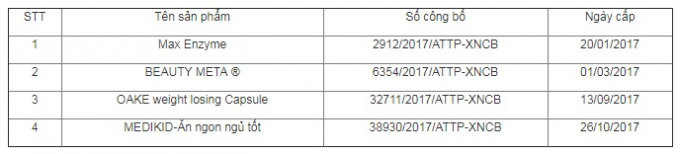 Theo nội dung quyết định, Cục An toàn thực phẩm Thu hồi hiệu lực Giấy xác nhận công bố phù hợp quy định an toàn thực phẩm các sản phẩm thực phẩm bảo vệ sức khỏe theo danh sách đính kèm của Công ty TNHH thương mại DP Hà An; địa chỉ: Nhà số 1, ngõ 564/37 Nguyễn Văn Cừ, phường Gia Thụy, quận Long Biên, thành phố Hà Nội.