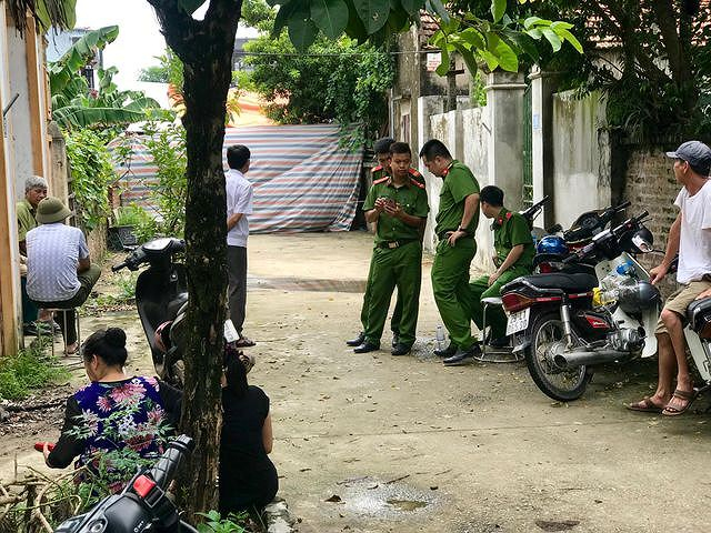 Lúc này, bà Doãn Thị Việt (SN 1971, vợ ông Hải) vừa đi xe máy ra khỏi cổng thì bất ngờ bị Đông dùng dao chém, gục xuống.
