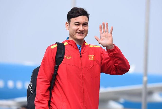 Sau khi đáp chuyến bay số hiệu VN 610 về sân bay Nội Bài vào khoảng 14h15 hôm nay (26/1), Văn Lâm cùng toàn đội tuyển Việt Nam đã có cuộc gặp mặt với Bộ trưởng Bộ Văn hóa, Thể thao và Du lịch và các lãnh đạo Liên đoàn Bóng đá Việt Nam.