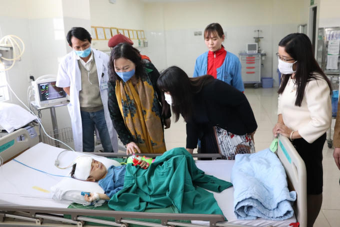 Thăm cháu Khang tại giường bệnh, Thứ trưởng ân cần hỏi han, dặn dò gia đình quan tâm chăm sóc cháu lành vết thương và ổn định tâm lý. Đồng thời, đề nghị chính quyền và các ngành chức năng của tỉnh cần quan tâm hơn nữa đến việc bảo vệ trẻ em, tránh để xảy ra trường hợp tương tự.