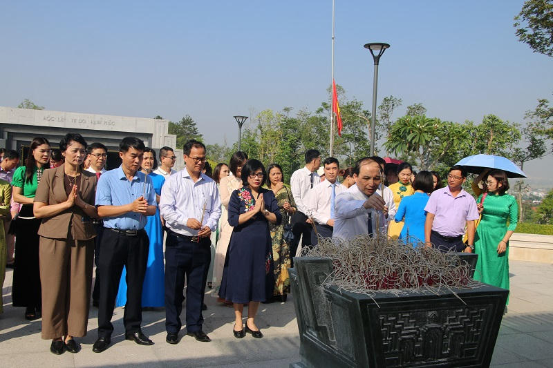 Thứ trưởng và đoàn công tác đã đến đặt vòng hoa, dâng hương tưởng niệm các anh hùng liệt sĩ tại Đền thờ liệt sĩ Chiến trường Điện Biên Phủ.