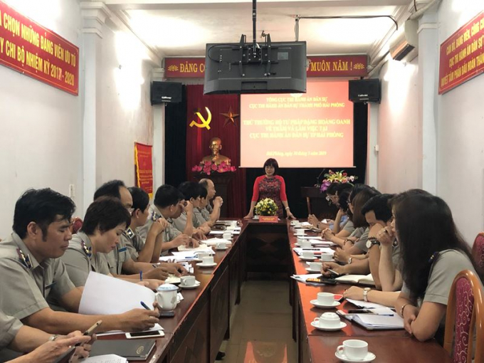Phát biểu tại buổi làm việc, Cục trưởng Cục THADS TP Hải Phòng Trần Hồng Quang cho biết, công tác THADS 7 tháng năm 2019 tại Hải Phòng tiếp tục có nhiều chuyển biến tích cực, bộ máy tổ chức được quan tâm nhất là đối với những đơn vị có lượng án lớn. Công tác phối hợp với trại tạm giam, trại giam và các cơ quan liên quan được đẩy mạnh. Kết quả thi hành xong về việc hoặc tiền đều tăng so với năm 2018: việc tăng 1,98%, tiền tăng 18,11%, tỷ lệ phân loại tiền có điều kiện tăng cao.