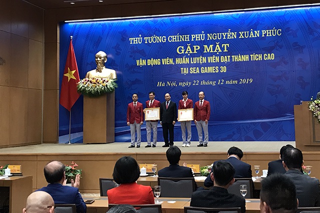 Sáng ngày 22/12, tại trụ sở Văn phòng Chính phủ, Thủ tướng Nguyễn Xuân Phúc gặp mặt vận động viên, huấn luyện viên đạt thành tích cao tại SEA Games 30.