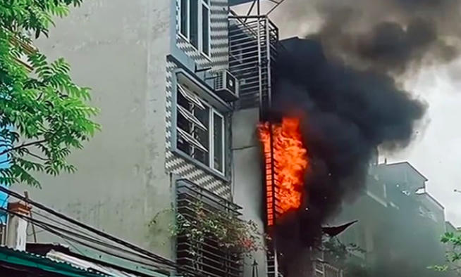 Hiện trường ngôi nhà tại phố Thành Công, phường Quang Trung, Hà Đông tại thời điểm xảy ra vụ cháy (Ảnh: Sức khoẻ Đời sống).
