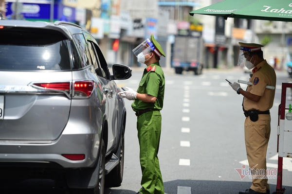 Lực lượng công an làm nhiệm vụ phòng chống dịch. Ảnh: Thanh Tùng