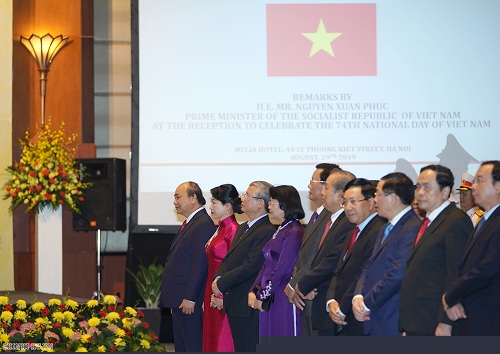 Tối ngày 29/8, nhân kỷ niệm 74 năm Quốc khánh Nước Cộng hòa xã hội chủ nghĩa Việt Nam (2/9/1945 - 2/9/2019), Thủ tướng Nguyễn Xuân Phúc và Phu nhân đã chủ trì chiêu đãi trọng thể các vị Đại sứ, Đại diện, Trưởng đại diện các tổ chức quốc tế cùng các Phu nhân, Phu quân tại Việt Nam