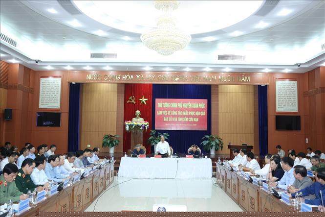 Sau khi trực tiếp thị sát công tác khắc phục hậu quả bão số 9 và thăm hỏi đời sống bà con nhân dân tại Quảng Ngãi, Quảng Nam, chiều 1/11, tại thành phố Tam Kỳ, tỉnh Quảng Nam, Thủ tướng Nguyễn Xuân Phúc đã làm việc với lãnh đạo các địa phương: Quảng Nam, Quảng Ngãi, Bình Định, thành phố Đà Nẵng về khắc phục hậu quả cơn bão và công tác tìm kiếm, cứu nạn.