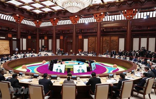 | Hội nghị bàn tròn của Diễn đàn "Vành đai và Con đường" tại Bắc Kinh, ngày 27/4 (ảnh: TTXVN) |