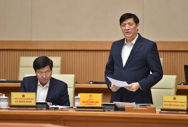 Bộ trưởng Bộ Y tế Nguyễn Thanh Long báo cáo tại phiên họp. Ảnh: VGP/Quang Hiếu