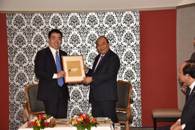 Tại buổi đón tiếp, Thủ tướng Nguyễn Xuân Phúc cảm ơn sự quan tâm, hợp tác, hỗ trợ hiệu quả mà Ngài Thống đốc, chính quyền tỉnh Shiga đã dành cho đất nước và nhân dân Việt Nam.