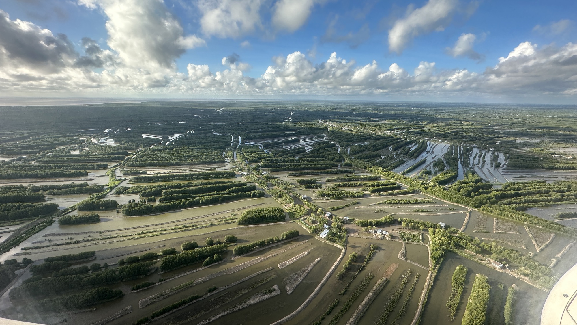 Thủ tướng thị sát tình hình sạt lở ven biển các tỉnh Sóc Trăng, Bạc Liêu, Cà Mau bằng máy bay trực thăng - Ảnh VGP/Nhật Bắc
