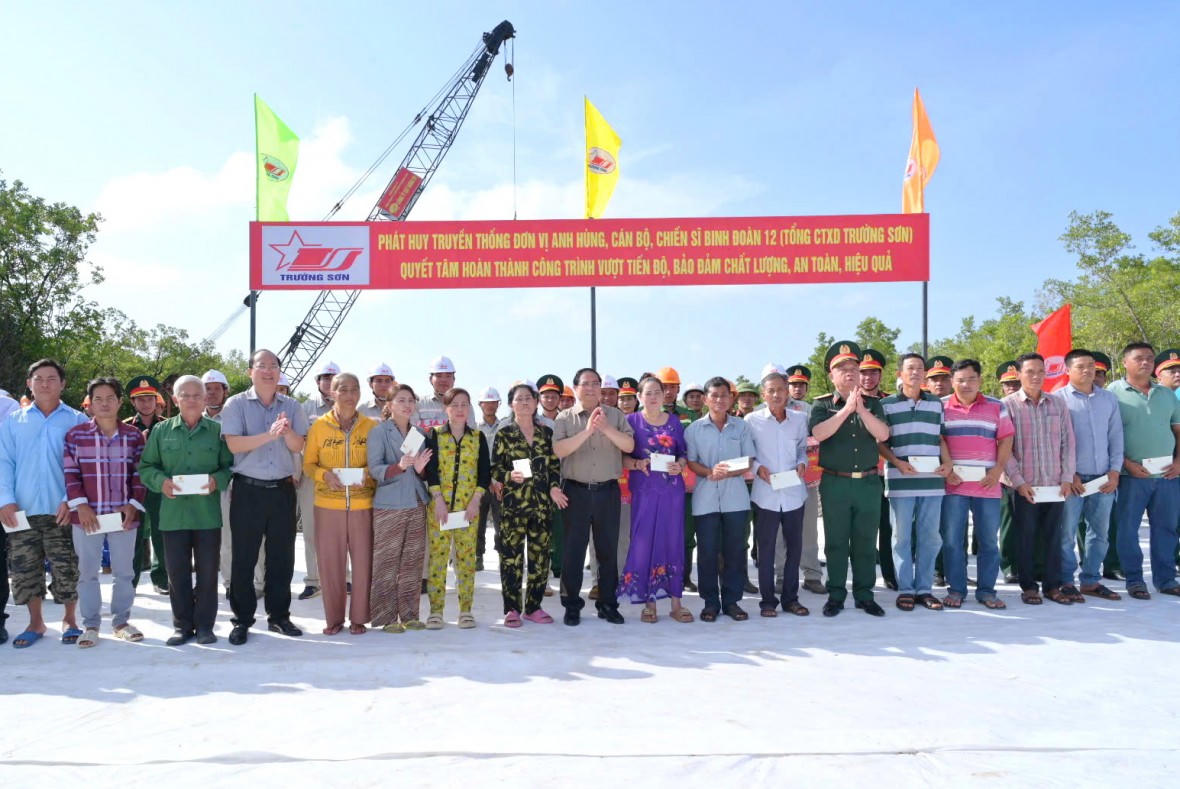 Tại khu vực Đất Mũi – vùng đất địa đầu cực Nam của Tổ quốc, Thủ tướng Phạm Minh Chính trực tiếp kiểm tra hiện trường thi công, thăm hỏi, động viên đội ngũ cán bộ, kỹ sư, công nhân đang làm việc trong điều kiện thời tiết khắc nghiệt. Thủ tướng ghi nhận, đánh giá cao tinh thần trách nhiệm, nỗ lực vượt khó của các đơn vị tham gia dự án; đồng thời yêu cầu các chủ đầu tư, nhà thầu tập trung tối đa nguồn lực, tổ chức thi công khoa học, bảo đảm tiến độ, chất lượng, an toàn, mỹ thuật và hiệu quả; tuyệt đối không để xảy ra tiêu cực, lãng phí, thất thoát.