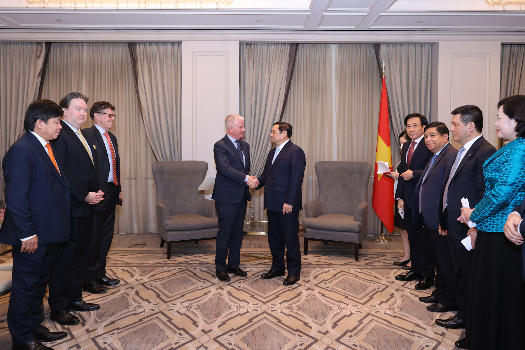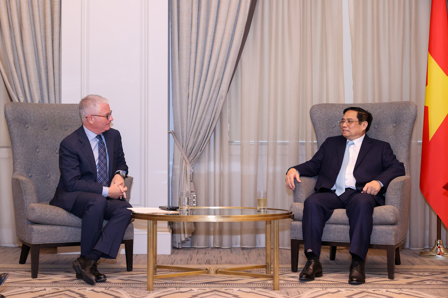 Sáng cùng ngày, Thủ tướng đã tiếp ông Brendan Duval, Chủ tịch, Tổng Giám đốc Tập đoàn Glenfarne chuyên về chuyển đổi năng lượng, thành viên Hội đồng Kinh doanh vì sự hiểu biết quốc tế của Mỹ (BCIU).
