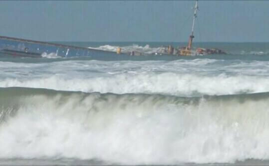 Tàu bị sóng đẩy chỉ cách bờ biển Thuận An khoảng hơn 100m. Thân tàu phía trước bắt đầu gãy khiến mũi tàu chúi dần xuống biển.