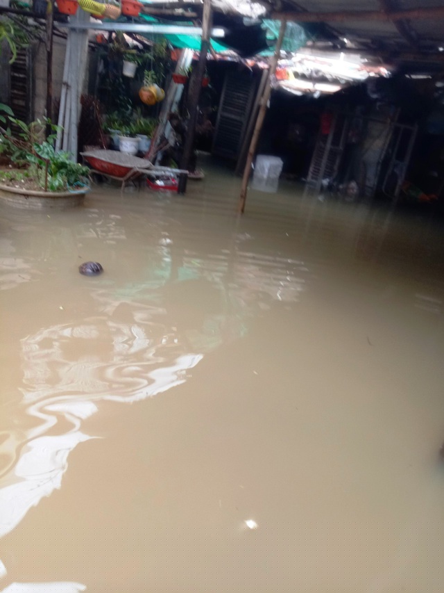 Nhiều nhà đã ngập lên gần nóc. Các hộ dân đã lên gác mái ngồi tránh lũ. Hiện tại nước lũ có xuống nhưng chậm.
