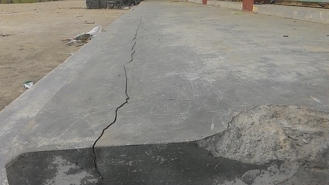 | Nền ngay trước cổng chợ đang có những vết nứt rất đáng lo ngại. |