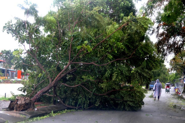 Tại TP Huế, khá nhiều cây bị bật gốc
