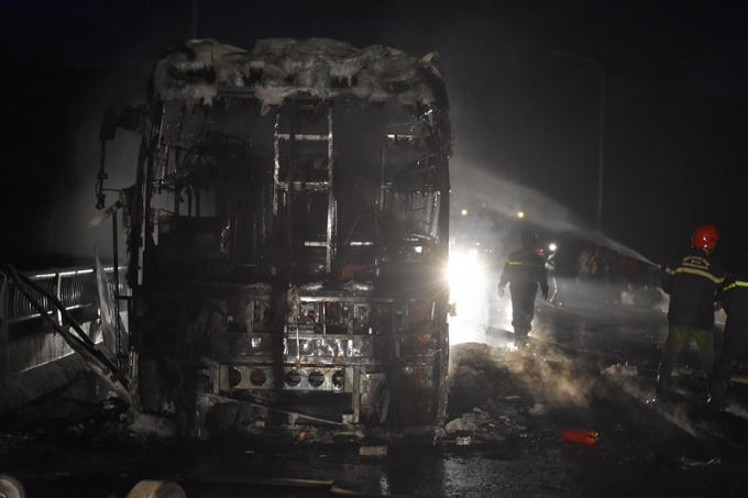 Theo một người chứng kiến cho hay: “Lửa lan nhanh, hàng chục hành khách trên xe và tài xế kịp tung cửa thoát ra ngoài trước khi ngọn lửa bùng phát dữ dội”.