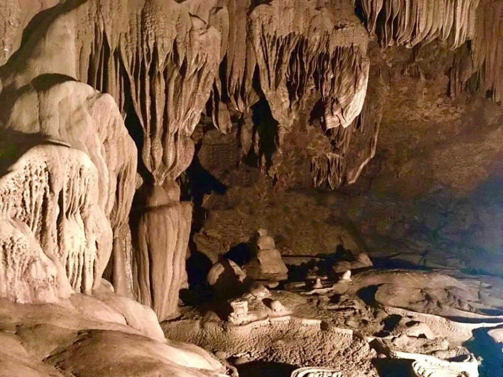Dòng nước róc rách qua hồ, phản chiếu ánh sáng yếu ớt, khiến không gian như mở ra một thế giới kỳ bí. Từng khối thạch nhũ như được bàn tay của con người tạo hóa tỉ mỉ chạm trổ qua hàng nghìn năm, tạo nên khung cảnh mờ ảo khiến du khách không khỏi ngỡ ngàng.