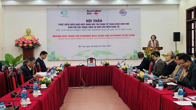 Với sự hỗ trợ của Chương trình “Australia hỗ trợ cải cách kinh tế Việt Nam” (Aus4Reform), hôm qua (20/1), CIEM tổ chức Hội thảo công bố báo cáo “Thực hiện hiệu quả Hiệp định Đối tác Kinh tế Toàn diện Khu vực gắn với cải thiện tính tự chủ của nền kinh tế: Yêu cầu hoàn thiện thể chế thương mại và đầu tư ở Việt Nam”.