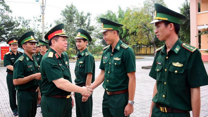 Thượng tướng Nguyễn Trọng Nghĩa tới thăm một đơn vị quân đội.