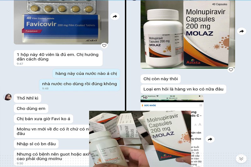 Các loại thuốc mang nhãn mác Molnupiravir, Favipiravir, Favicovir… không rõ nguồn gốc được rao bán với lời quảng cáo thuốc chính hãng, uy tín, “dùng một hộp là khỏi”.