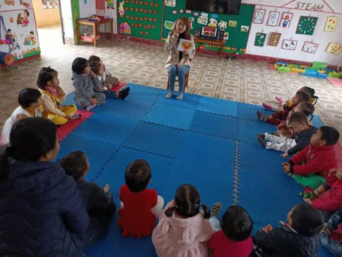 Thầy và trò của Trường Tiểu học Thanh Xuân (Quan Hóa, Thanh Hóa) trong giờ sinh hoạt tại thư viện xanh.