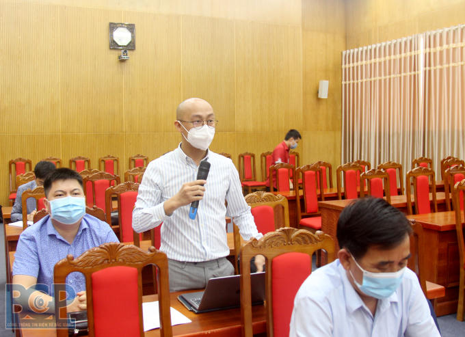 Phóng viên Báo Pháp luật Việt Nam phát biểu ý kiến trao đổi tại hội nghị. Ảnh BGP
