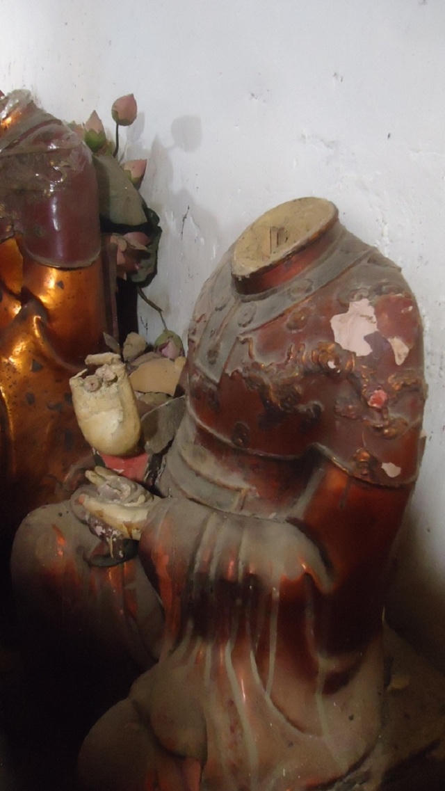 Theo ghi nhận của phóng viên, trong chùa có khoảng hơn 10 pho tượng bị hư hại nặng, đầu tượng phật bị gãy tách khỏi thân, cổ tượng rạn nứt, tay chân gãy rời hoặc bong tróc… nhiều pho tượng được người dân tạm thời dùng xi măng tu sửa nhưng cũng không đạt hiệu quả.
