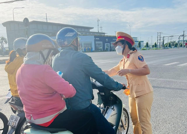 Ngoài việc tiếp sức cho người dân đi đường, các chiến sĩ Công an đã tuyên truyền luật giao thông đường bộ, nhắc nhở người đi đường tham gia giao thông đúng cách để bảo đảm an trên các tuyến quốc lộ.