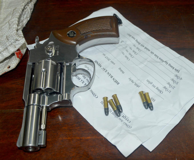 Đối tượng bị bắt giữ là Hoàng Ngọc Tân cùng 6 bánh heroin và 1 khẩu súng.