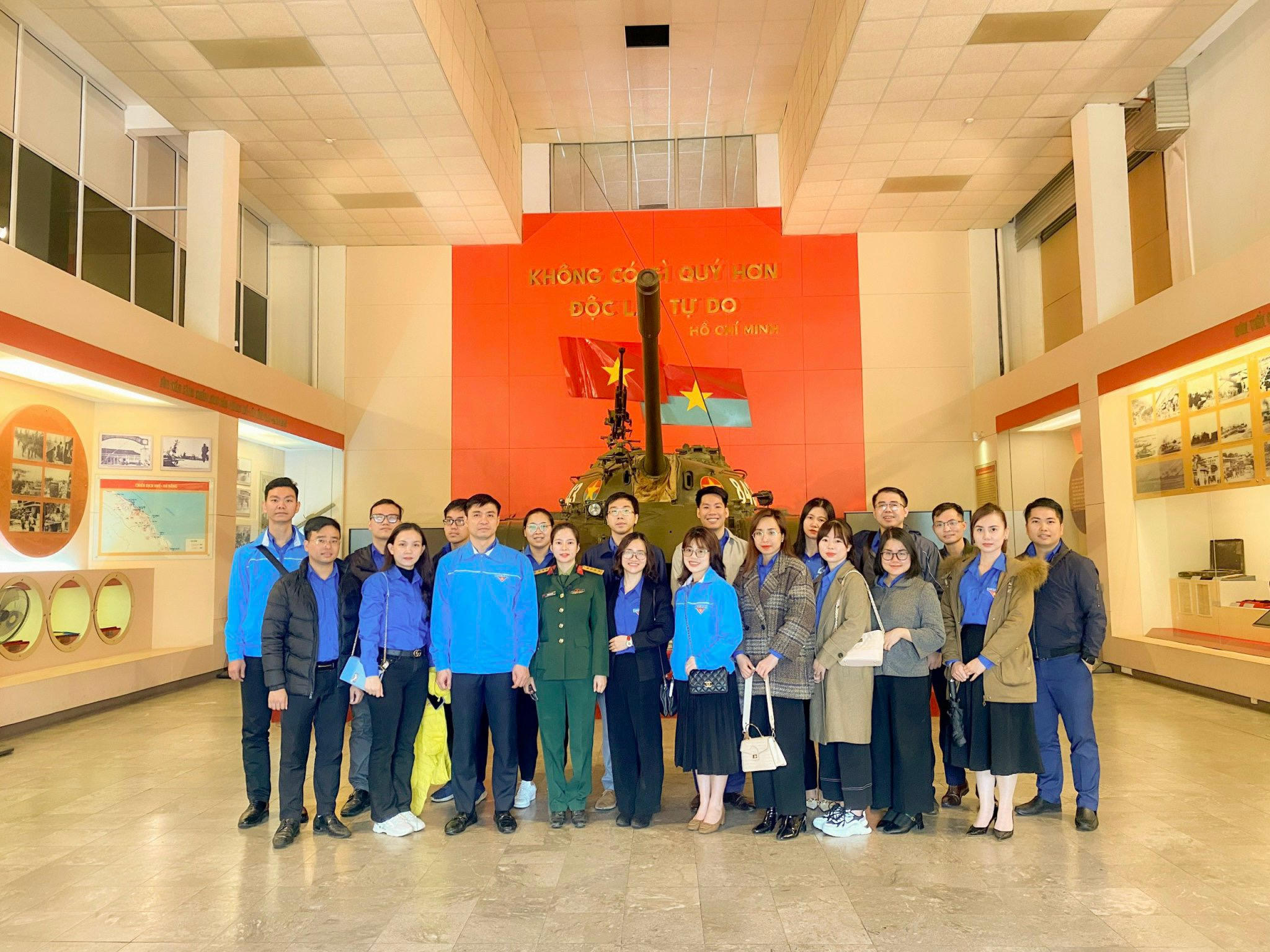 Đoàn tham quan tại Bảo tàng lịch sử Quân sự Việt Nam và nghe giáo dục về quá trình đấu tranh bảo vệ Tổ quốc.