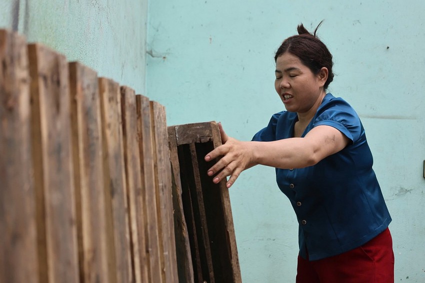| Người dân dọn dẹp nhà cửa để di dời. |