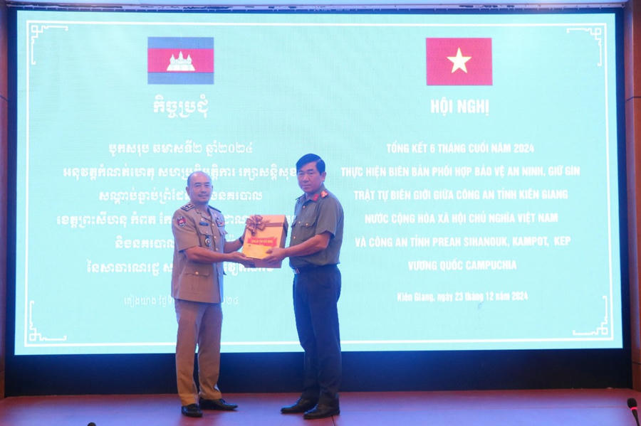 Chiều 23/12, Công an tỉnh Kiên Giang tổ chức Hội nghị tổng kết năm 2024 thực hiện biên bản hợp tác bảo vệ an ninh, giữ gìn trật tự biên giới giữa Công an tỉnh Kiên Giang và Công an 03 tỉnh Campuchia giáp biên gồm: Kampot, Kep, Preah Sihanouk.