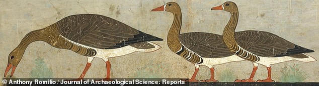 Theo Romilio, xương của ngỗng ngực đỏ hiện đại, hay Branta ruficollis, chưa từng được ghi nhận tại bất kỳ địa điểm khảo cổ Ai Cập nào. Tuy nhiên, xương của một loài chim tương tự với loài trong tranh, nhưng không giống hệt nhau, đã được tìm thấy trên đảo Crete, Hy Lạp. “Từ góc độ động vật học, tác phẩm của Ai Cập là tài liệu duy nhất về loài ngỗng có hoa văn đặc biệt này, hiện nay dường như đã tuyệt chủng trên toàn cầu”, ông nhấn mạnh.