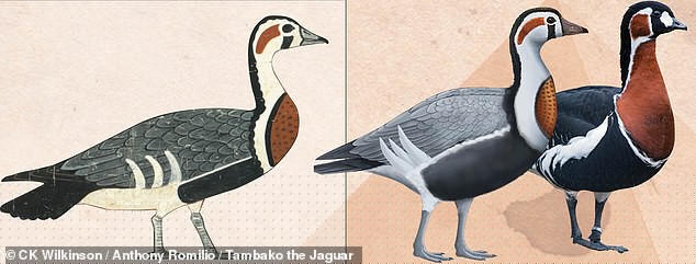 Nó khác hẳn loài ngỗng ngực đỏ ngày nay.