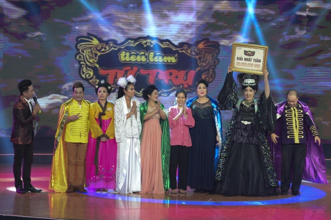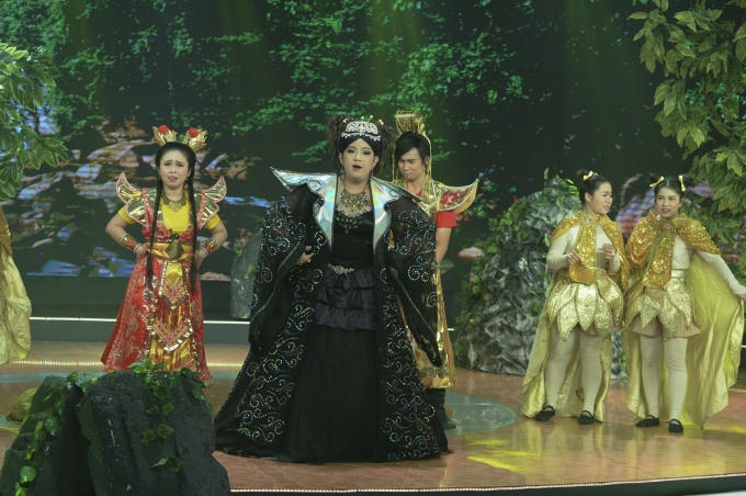 Thể hiện sự duyên dáng với vai Tiêu Dao Bà Bà trong tiểu phẩm Ân oán tình thù, Hoài Tân khiến người xem cười nghiêng ngả.