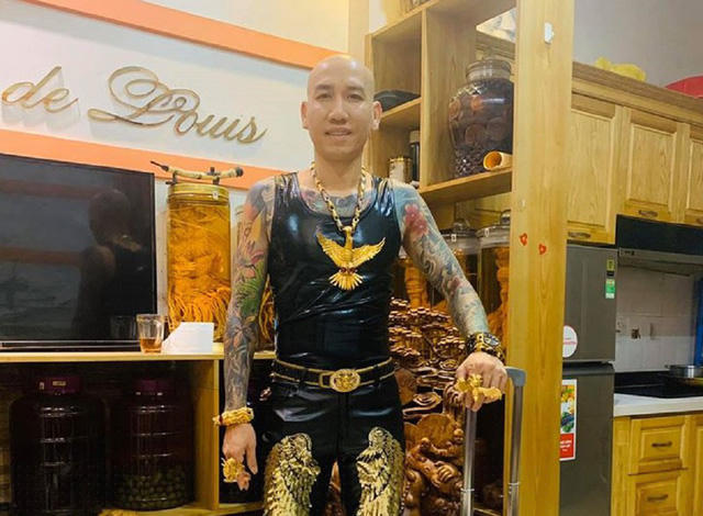 Phú được giới trẻ biết đến với chiếc đầu trọc, cơ thể phủ kín những hình xăm, đeo rất nhiều vàng.