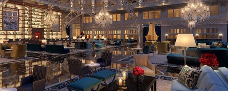 Nhưng vào khách sạn này, bạn có thể cần phải đeo kính râm để tránh bị ánh sáng rực rỡ chiếu vào mắt; đài phun nước hoành tráng được dát vàng với rất nhiều đèn pha lê khổng lồ. Tất cả mọi thứ phù hợp với phong cách Trump.