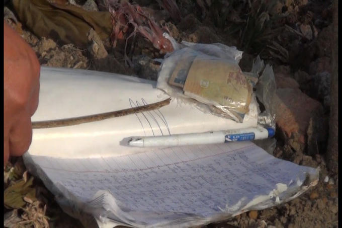 Quyển vở nạn nhân ghi lời trăng trối được tìm thấy gần hiện trường vụ tự thiêu