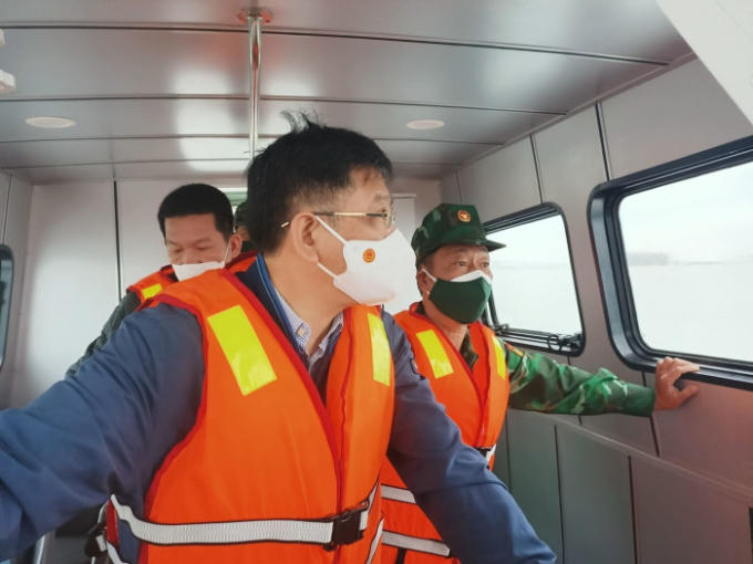 Thứ trưởng Nguyễn Xuân Sang, Phó chủ tịch chuyên trách Ủy ban ATGT Quốc Gia Khuất Việt Hùng trực tiếp xuống tàu cao tốc của đơn vị chức năng, ra vùng biển khu vực tàu gặp nạn, chỉ đạo khẩn công tác tìm kiếm. (Ảnh: Báo Giao thông)