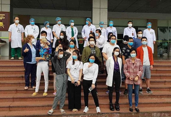 Các bệnh nhân được công bố khỏi bệnh sáng 30-3 tại Bệnh viện Bệnh nhiệt đới trung ương (ảnh Tuổi trẻ)