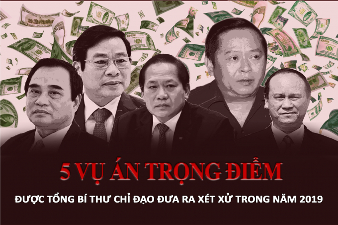 Tại phiên họp của Thường trực Ban Chỉ đạo Trung ương về phòng, chống tham nhũng, Tổng Bí thư, Chủ tịch nước chỉ đạo từ nay đến hết năm 2019, khẩn trương đưa ra xét xử sơ thẩm đối với 5 vụ án nghiêm trọng, phức tạp.