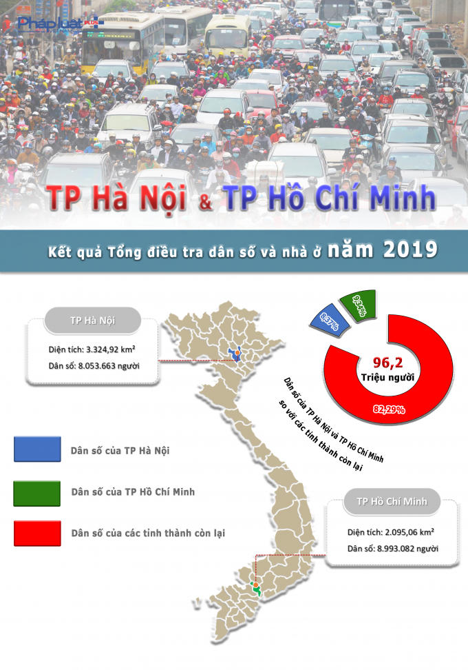 Với kết quả Tổng điều tra dân số và nhà ở năm 2019, hai thành phố đông dân nhất nước là Hà Nội có 8,05 triệu dân, TPHCM có 8,99 triệu dân.