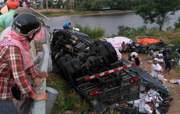 Quảng Trị: “Nhảy” cầu Đông Hà, ôtô tải chở trái cây hỏng nặng