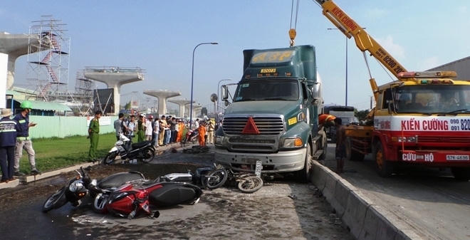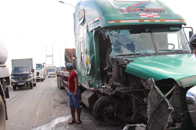 Theo đó, vào khoảng 14h ngày 16/8 xe container BKS 51C-335.86 chạy trên cầu Phú Mỹ hướng quận 7 qua quận 2. Khi đang đổ dốc cầu (phường Thạnh Mỹ Lợi , quận 2) thì xảy ra va chạm với một xe container khác BKS 51C-215.18 chạy cùng chiều.
