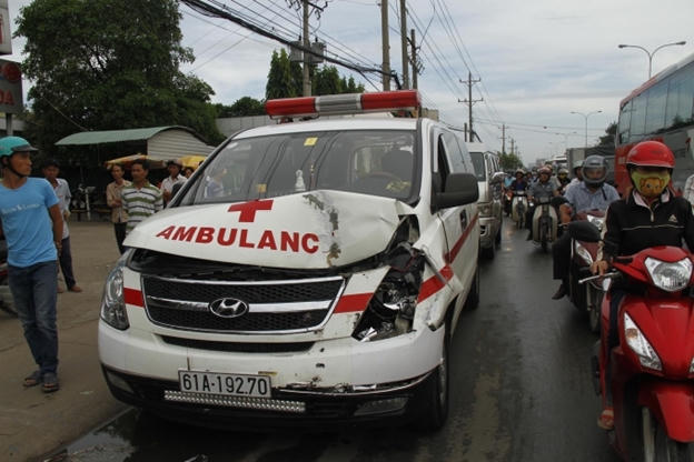 Vào khoảng 7h15, xe ô tô 4 chỗ biển số 51A - 815.25 chạy trên quốc lộ 13 theo hướng từ Bình Dương về TP HCM. Khi xe đến đoạn trước Bệnh viện Hoàn Hảo thuộc phường Thuận Giao, thị xã Thuận An thì bất ngờ phanh gấp, lúc này chiếc xe cứu thương do tài xế Nguyễn Thanh Hải, 44 tuổi, ngụ Bình Dương điều khiển chạy cùng chiều phía sau không kịp phanh đã tông vào đuôi xe phía trước.