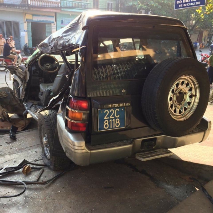 Cú va chạm khiến xe công 7 chỗ của huyện ủy Yên Sơn (Tuyên Quang) bị hư hỏng nặng, trên xe chỉ có duy nhất một người và tử vong sau đó.