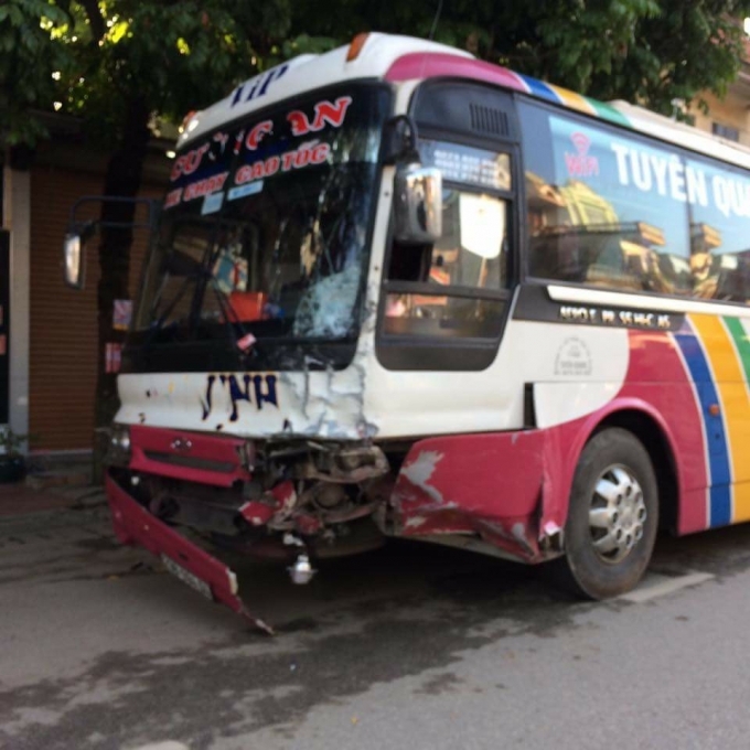 | Xe khách hư hỏng nhẹ phần đầu. |