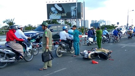 Khi đang chạy trên cầu Nguyễn Văn Cừ, thuộc phường 1, quận 4 thì xảy ra va chạm với một phương tiện khác đang lưu thông cùng chiều khiến người này loạng choạng tay lái va vào hông chiếc ô tô 7 chỗ biển kiểm soát 51F-159.15 rồi ngã xuống đường, tử vong tại chỗ.